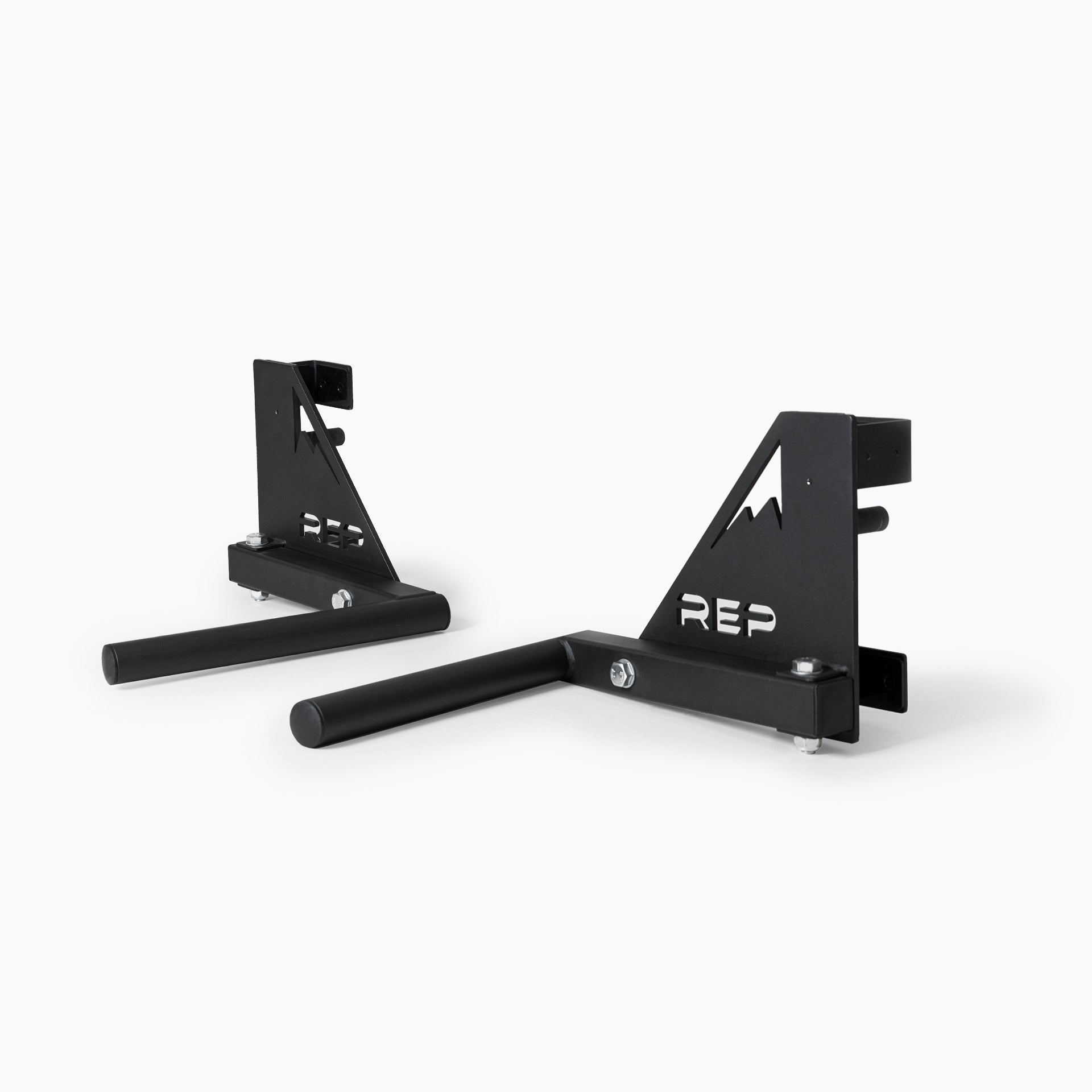 The Drop-In Dip Attachment is as easy to mount to your uprights as J-cups. Its innovative mounting style makes this new dip attachment incredibly stable, with no wiggle. Plus, it works great with the REP Belt Squat Attachment.